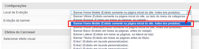 - Ao configurar o banner, é essencial atribuí-lo à categoria correspondente ao “Banner Home Mobile”. Essa etapa é fundamental para garantir que o banner seja exibido corretamente em dispositivos móveis.