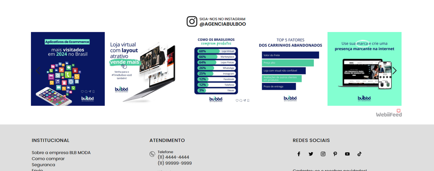 AVISO IMPORTANTE: Você quer exibir o seu feed do Instagram em sua loja? Você precisará estar cadastrado na ferramenta WebiiFeed, faça seu cadastro clicando aqui.