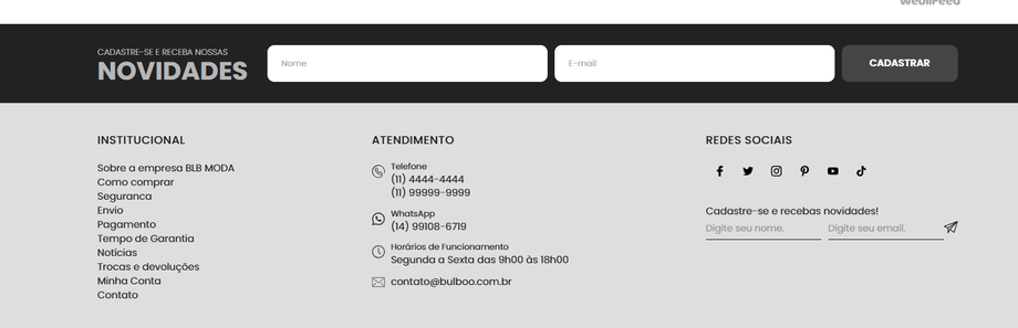Você quer dar mais destaque no campo de preenchimento da newsletter? Você poderá alterar na aba ITENS ADICIONAIS> Newsletter rodapé > Sim ou Não.